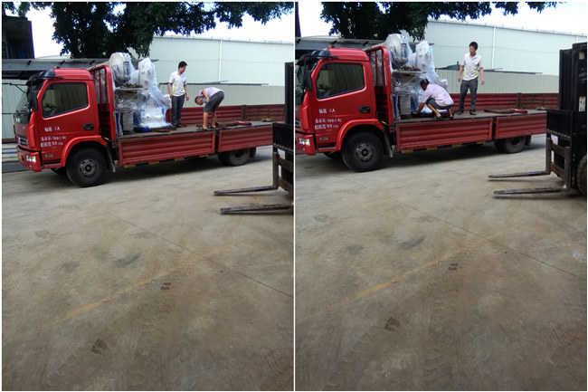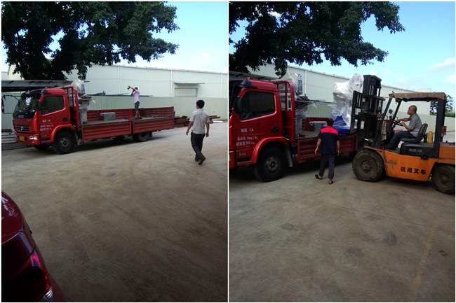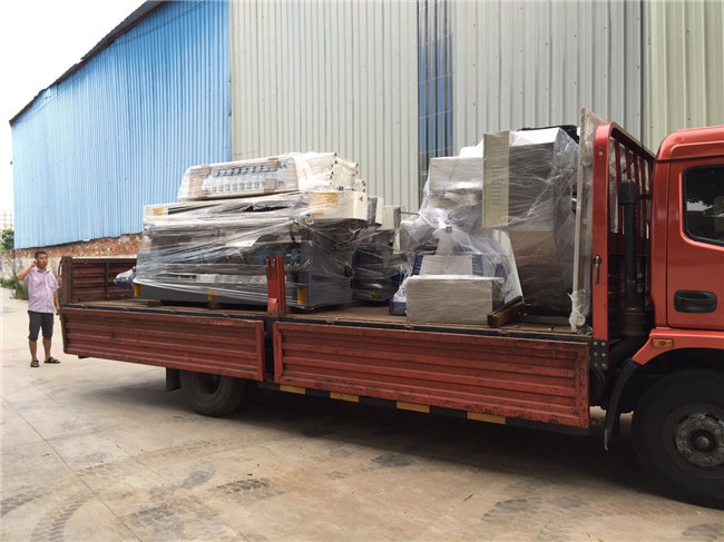 创世强一台异形磨边机、一台钻孔机两台、9磨头直边机,发货到广西贺洲。