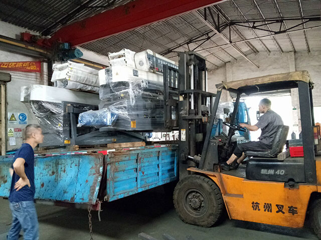 两台CSQ-9玻璃直线磨边机和一台CSQ-1321玻璃异形磨边机发往江苏