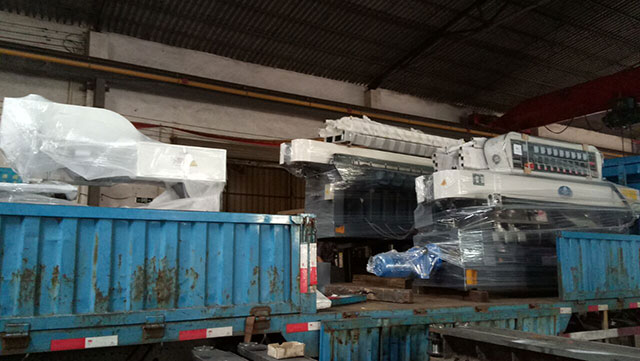 2018年5月23日 一台9头玻璃磨边机一台8头石材磨边机分别发往??诤透=?/span>